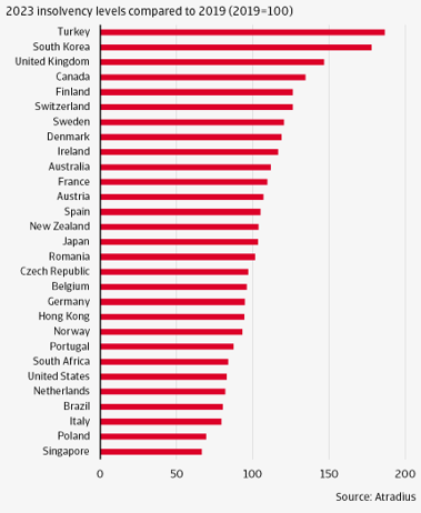 2023 brings an overall increase in insolvencies, with a wide variation across markets