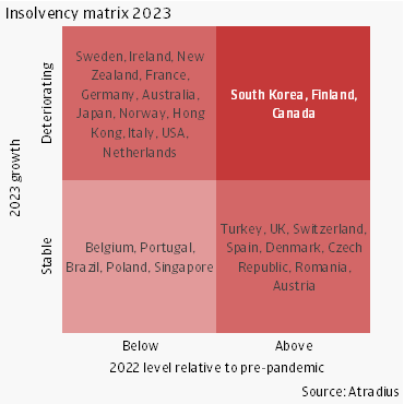 • Conversely, we forecast high decreases in markets where insolvencies already overshoot their pre-pandemic levels (such as South Korea, Ireland, Canada and Finland).